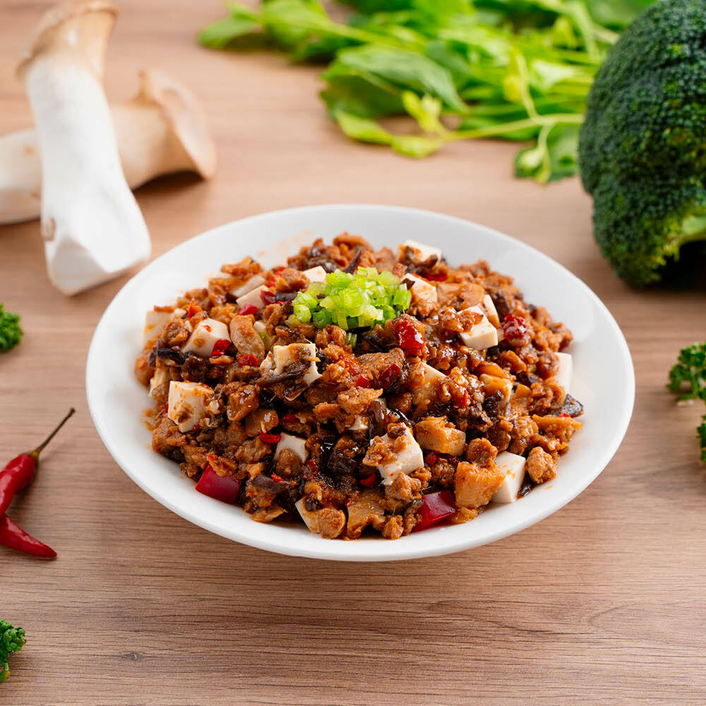 Mapo Light Meat Sauce is transformed into a new vegetarian dish. The soy protein is made into plant ground meat through multiple rigorous processes. It is cooked with shredded fungus, king oyster mushrooms, and shiitake mushrooms. , fragrant and spicy flavor, super appetizing with rice or noodles.