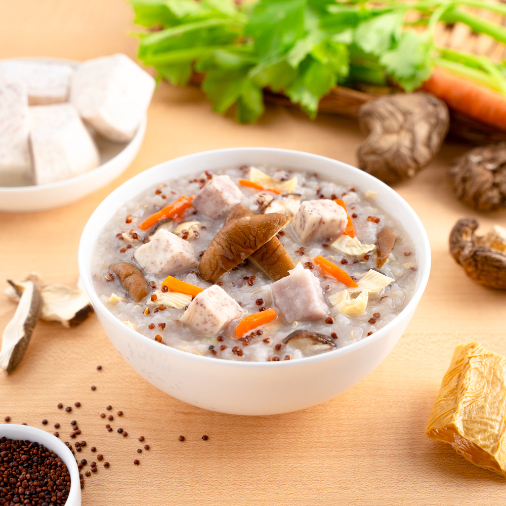 營養穀物紅白藜麥加入飽滿毛豆、紅黃椒丁及洋蔥丁,以義大利初榨橄欖油及黑胡椒簡單調味,呈現食材天然原味