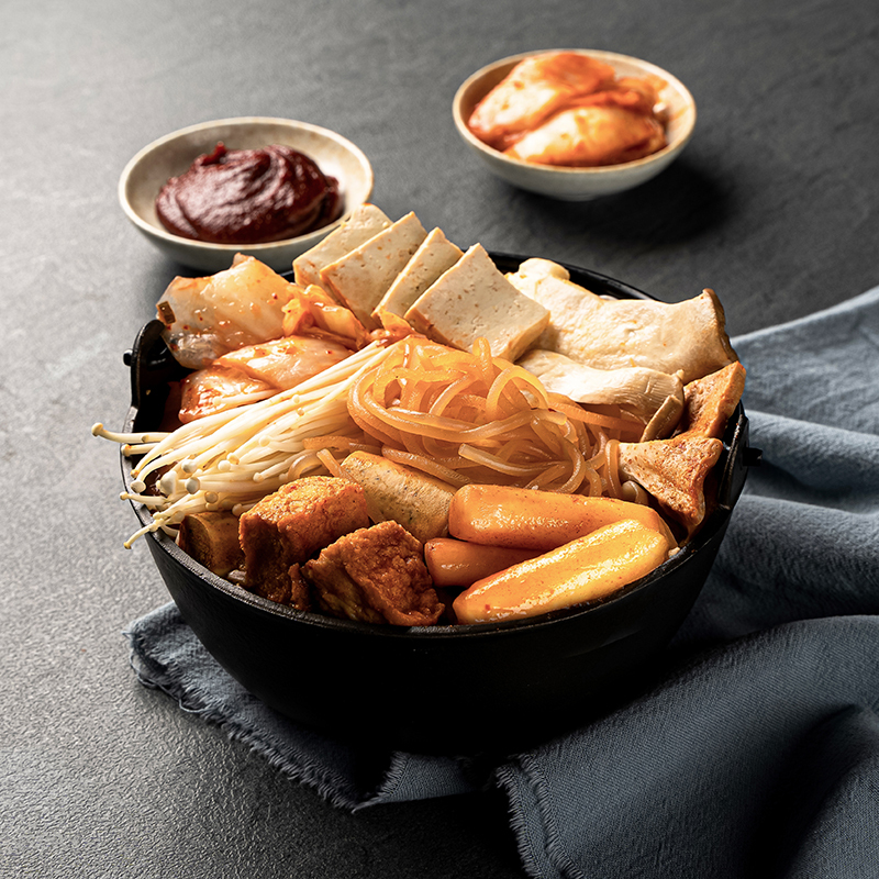 韓國經典平民美食部隊鍋,加入軟糯的年糕、Q彈滑嫩的韓式冬粉、爽脆口感的魚板,及可感受到香嫩彈滑鮮香杏鮑菇等食材,搭配濃郁辣椒香,辣中帶著微甜的湯底,入喉濃郁豐醇、不膩口。
