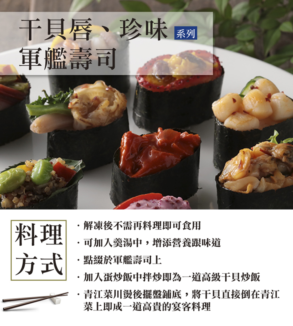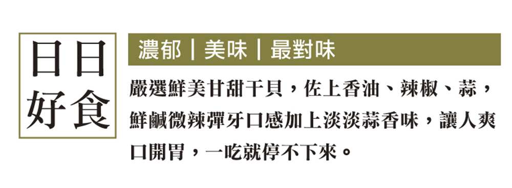 肥美干貝以醬油、香油及些許辣椒碎調味