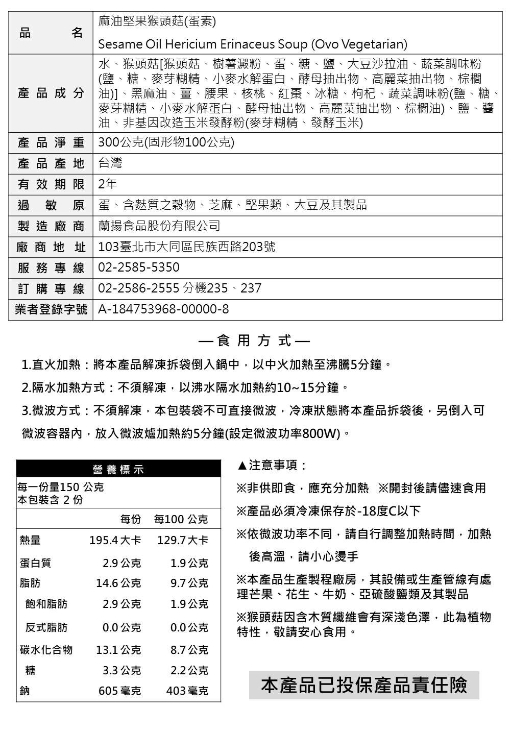 嚴選滑嫩Q彈猴頭菇,經過多道工序去除苦澀味,入口厚實彈牙,以特選黑麻油與薑燉煮出濃郁好滋味,再加入枸杞、紅棗、核桃與腰果使麻油風味湯頭更清甜鮮美,入喉濃郁豐醇,熱熱喝暖韻十足,美味無法擋。